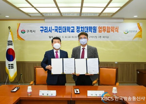 시와 국민대학교 정치대학원은 관학 협력의 일환으로 직무능력 향상을 위한 석사학위 과정 전문교육, 상호 현안 및 시책에 대한 자문 협조 등 상호교류, 구리시청 재직자에 대한 수업료 감면을 주요 골자로 협약을 체결했다.