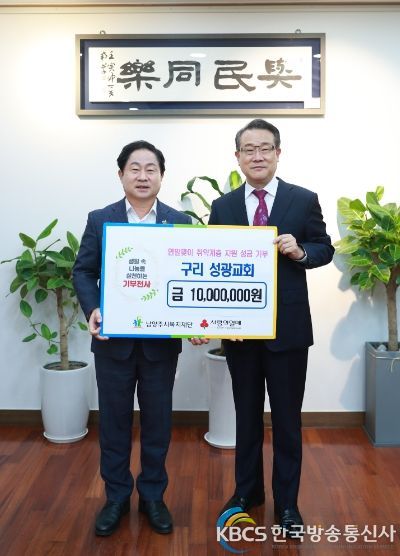 한국방송통신사 관리자 기자 | 구리시 수택동에 소재한 성광교회(담임목사 김희수)는 24일 남양주시복지재단(대표이사 심우만)에 후원금 1천만 원을 전달하며 따뜻한 이웃 사랑을 실천했다.