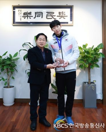 또한, 이시형 선수는 친필 사인이 담긴 국가대표 티셔츠를 주광덕 시장에게 선물하며, 화기애애한 분위기 속 주 시장과 환담을 나눴다.