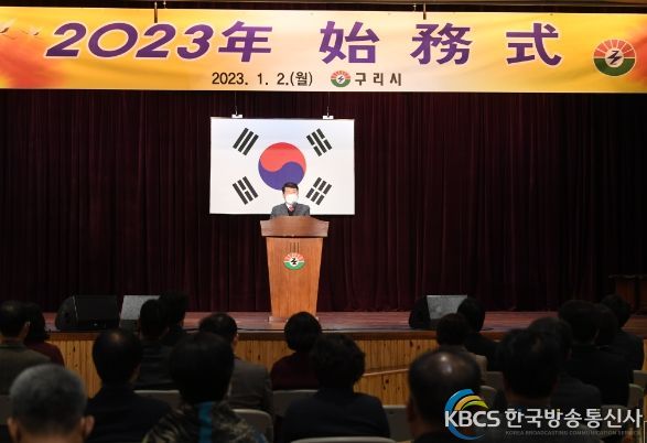 한국방송통신사 관리자 기자 | 백경현 구리시장은 2일 오전 구리시청 대강당에서 열린 ‘2023년 시무식’을 주재하고, 역동적인 혁신성장과 시민의 삶이 변하는 구리시 대전환을 강조했다.
