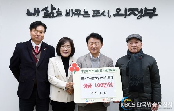 한국방송통신사 관리자 기자 | 의정부시는 1월 4일 의정부시문화상수상자포럼(회장 이윤분)에서 시청을 방문해 의정부시 100일간 사랑릴레이 배턴잇기 운동에 성금 100만 원을 기부했다고 밝혔다.