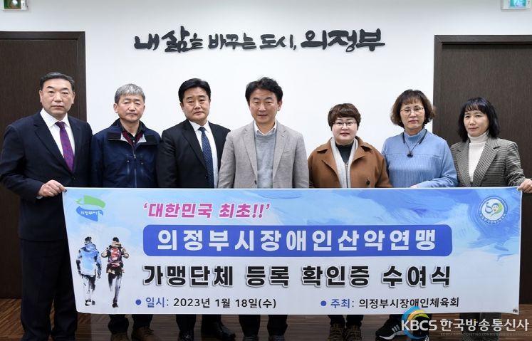 한국방송통신사 관리자 기자 | 지난 18일 의정부시장애인체육회(회장 김동근)는 장애인산악연맹의 가맹등록 확인서를 의정부시청에서 수여했다. 장애인산악연맹이 정가맹단체로 등록된 것은 대한민국 최초이다.