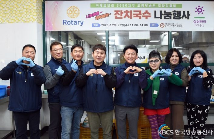 한국방송통신사 관리자 기자 | 의정부시는 국제로타리 3690지구 의정부 송산로타리클럽에서 2월 22일 송산노인종합복지관을 이용하시는 어르신 400명을 대상으로 잔치국수 나눔 행사를 했다고 밝혔다.