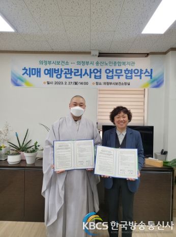 한국방송통신사 관리자 기자 | 의정부시 보건소는 27일 보건소장실에서 송산노인종합복지관과 지역사회 치매 예방관리사업의 효과성 제고를 위한 업무협약(MOU)을 체결했다.