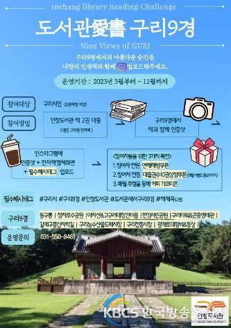 이번 프로그램은 구리시민이라면 누구나 자유롭게 참여 가능하며, 구리시 공식 채널을 기반으로 구리시 대표 관광자원인 《구리9경》을 홍보하는 동시에 독서 동기부여를 통한 도서관 이용률 증대 및 ‘책 읽는 구리시’ 구현을 목표로 하고 있다.