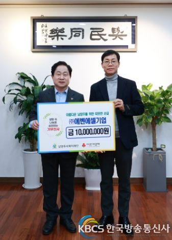 한국방송통신사 관리자 기자 | 남양주시 수동면에 소재한 텀블러 전문 제조업체 ㈜에벤에셀기업은 9일 지역의 취약계층을 위해 후원금 1,000만 원을 기부했다.