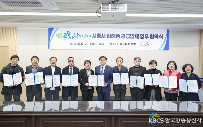 한국방송통신사 관리자 기자 | 시흥시는 지난 14일 시청 다슬방에서 고향사랑기부제 답례품 공급업체와 공급 체결 업무 협약식을 개최했다.