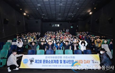 한국방송통신사 관리자 기자 | 구리시는 지난 27일 CGV 구리점에서 한국자유총연맹 구리시지회가 주관하여 취약계층과 자원봉사자 120여 명을 대상으로 ‘제2회 문화소외계층 및 봉사인의 시네마 DAY’를 개최했다고 밝혔다.