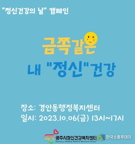 한국소통투데이 관리자 기자 | 광주시 정신건강복지센터는 정신건강의 날(10월 10일)을 맞이해 오는 10월 6일 ‘금쪽같은 내 정신건강’ 캠페인을 개최한다.