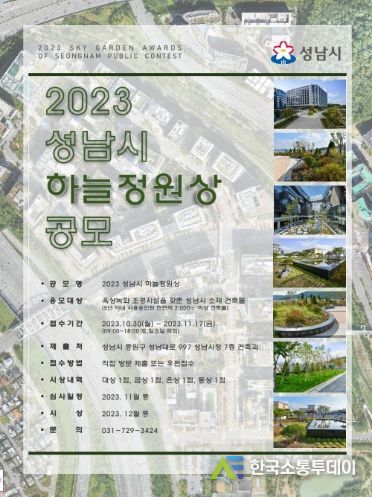 한국소통투데이 관리자 기자 | 성남시는 오는 11월 17일까지 ‘2023 하늘정원상’ 옥상녹화 우수건축물을 공모한다고 1일 밝혔다.
