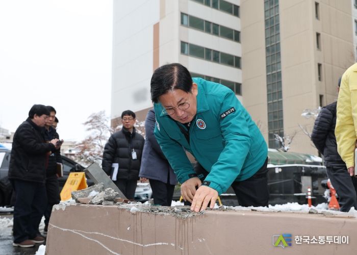 한국소통투데이 관리자 기자 | 박강수 마포구청장은 22일 오후, 밤사이 내린 강설로 지하 주차장 지붕덮개가 무너진 한 아파트 현장을 찾아 복구 상황을 살폈다.