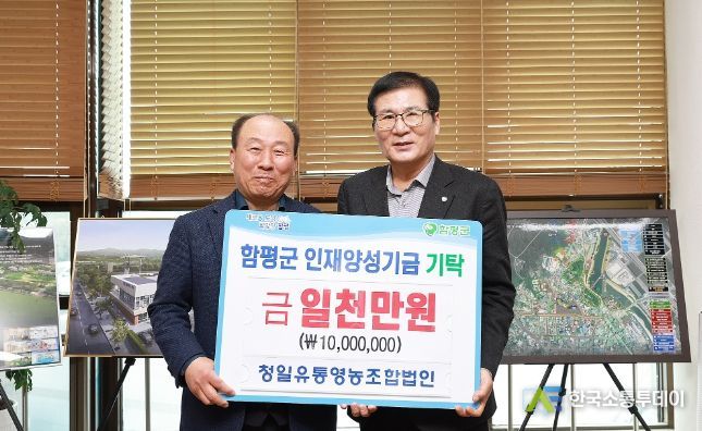한국소통투데이 관리자 기자 | 유통영농조합법인에서 함평군의 지역 인재 양성을 위하여 인재양성기금에 장학금 1천만 원을 기탁하여 지역사회에 눈길을 끌고 있다.