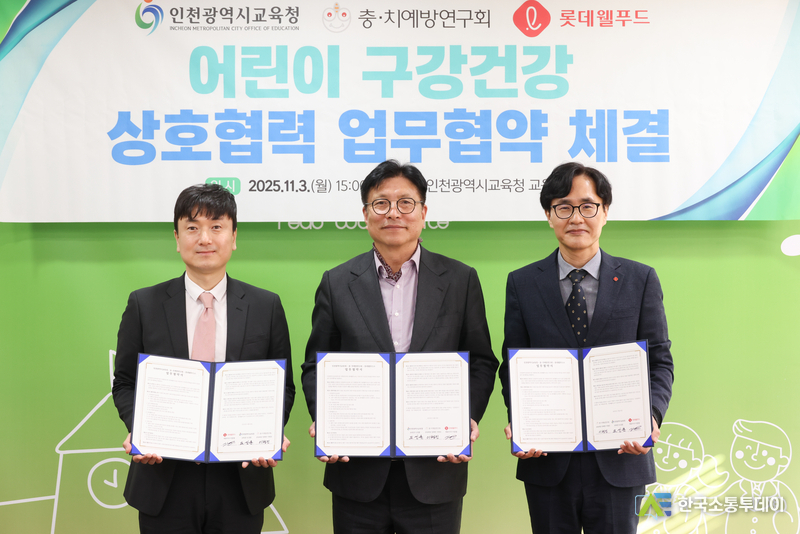 (한국소통투데이 통신사=김동현 기자) 인천광역시교육청(교육감 도성훈)은 3일 충·치예방연구회와 롯데웰푸드㈜와 함께 관내 어린이들의 구강건강 증진을 위한 업무협약을 체결했다. 초등 시기는 평생 사용할 영구치가 형성되는 중요한 시기로, 이 시기의 올바른 구강관리 습관은 평생 건강에 큰 영향을 미친다.