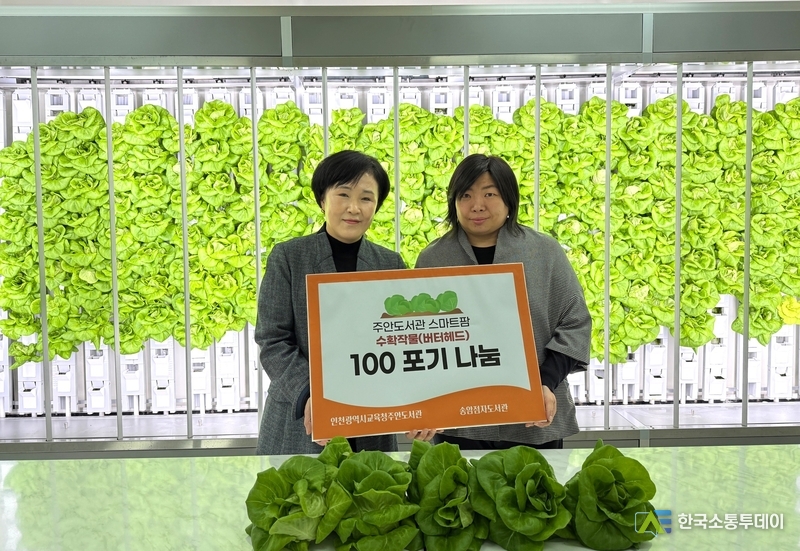 (한국소통투데이 통신사=김동현 기자) 인천광역시교육청주안도서관(관장 최문정)은 12일 송암점자도서관(관장 박수아)에 스마트팜에서 직접 재배한 버터헤드 상추 100포기를 기증했다.