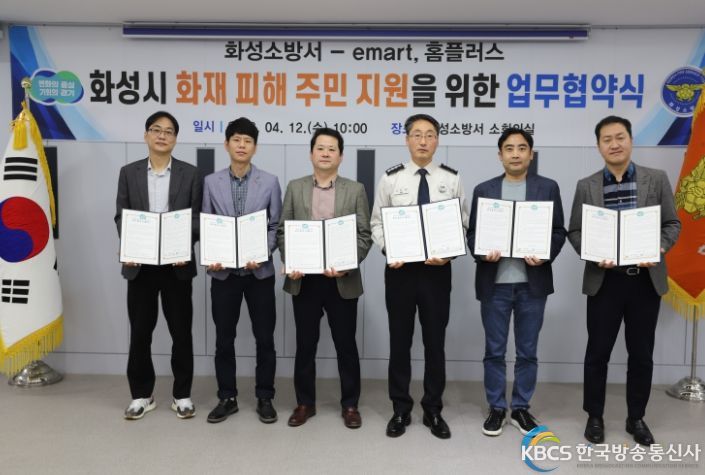 한국방송통신사 관리자 기자 | 화성소방서는 12일 관내 대형유통업체 5곳(이마트 동탄점, 화성봉담점, 홈플러스 동탄점, 병점점, 향남점)과 화재피해 주민 구호를 위한 '화재피해주민 지원 업무협약(MOU)'을 체결했다고 밝혔다.