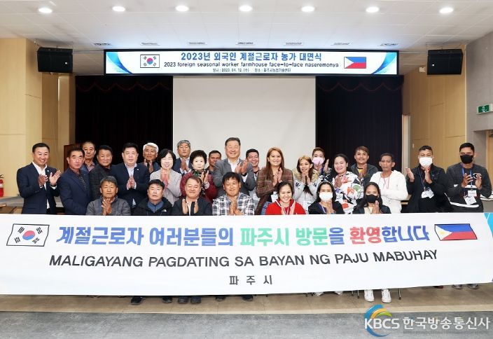 한국방송통신사 관리자 기자 | 파주시는 12일 농업기술센터에서 필리핀 제너럴 마리아노 알바레즈(GMA)시에서 입국하는 외국인 계절근로자를 환영하는 대면식을 가졌다.