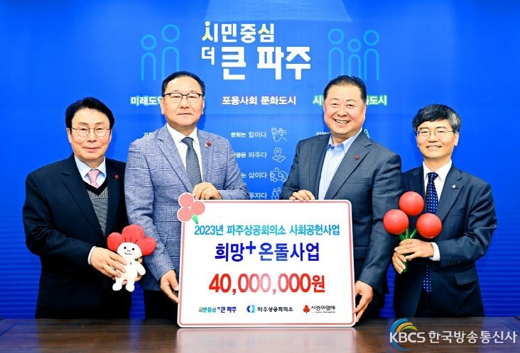 김경일 파주시장은 “파주상공회의소의 기부금 전달을 통한 이웃사랑 실천에 대해 감사드린다”며 “앞으로도 사업에 대한 지속적인 관심과 성원을 부탁드린다”고 밝혔다.