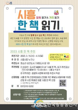 올해 처음 시작되는 ‘2023 시흥 한 책’은 시민이 직접 책을 선정한 후, 다양한 독서 행사를 연계하는 사업이다. 3월부터 진행된 ‘한 책’ 도서 추천에 266명의 시민이 365권의 책을 추천했으며, 도서관 사서, 지역 작가, 시민동아리 등으로 구성된 선정위원회가 이중 8권을 후보 도서로 선정하면 최종적으로 시민 투표를 통해 ‘시흥 한 책’을 정하게 된다. 5월부터는 선정된 ‘한 책’ 작가와의 만남을 비롯해 독서 릴레이 등 다양한 연계 행사를 추진하며 시민을 찾아갈 예정이다.