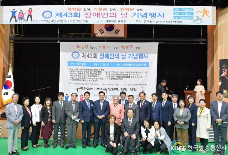 한국방송통신사 관리자 기자 | 동두천시장애인단체총연합회는 지난 20일 동두천시민회관에서 ‘차별은 없이, 기회는 같이, 행복은 높이’라는 슬로건으로 ‘제43회 장애인의 날’ 기념행사를 개최했다.