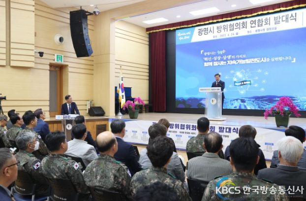 광명시는 24일 시청 대회의실에서 박승원 광명시장, 안성환 광명시의회 의장과 각 동 방위협의회 관계자 100여 명이 참석한 가운데 광명시 방위협의회연합회 발대식을 개최했다.