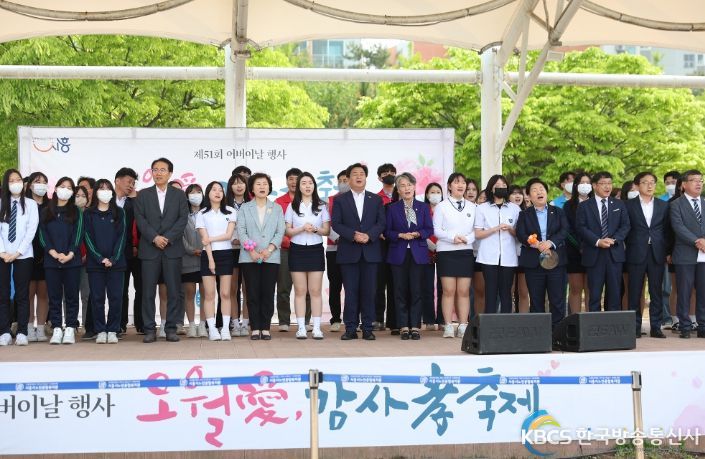 이날 1부 행사에서는 감사와 존경의 마음을 전하기 위해 능곡고등학교 학생들이 어르신들에게 직접 카네이션을 달아드리고 어버이날을 기념해 편지를 낭독하는 시간에 이어 경로효친 문화 확산에 기여한 효행자 등에게 표창을 수여했다.