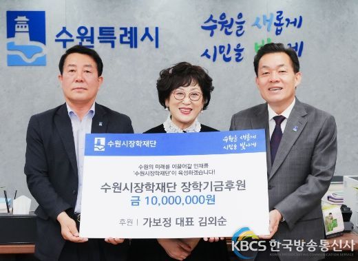 한국방송통신사 관리자 기자 | 김외순 가보정 대표가 “지역인재 양성에 사용해 달라”며 수원시장학재단에 1000만 원을 기탁했다.