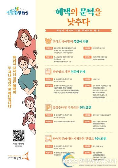한국방송통신사 관리자 기자 | 화성시가 저출생 극복을 위한 방안으로 화성시 다자녀 기준을 기존 세 자녀에서 두 자녀로 확대했다.
