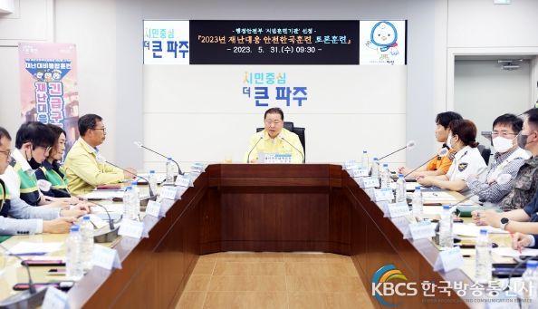 토론훈련은 재난안전상황실에서 파주시 재난안전대책본부장인 김경일 파주시장 주재로 진행됐으며, ▲화재 발생에 따른 상황전파 ▲상황판단회의 ▲재난안전대책본부 운영 점검 등을 실시했다.