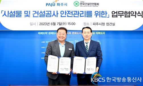 한국방송통신사 관리자 기자 | 파주시는 7일 시청 접견실에서 (사)한국건설안전협회와 ‘시설물 및 건설공사 안전 관리를 위한 업무협약’을 체결했다.
