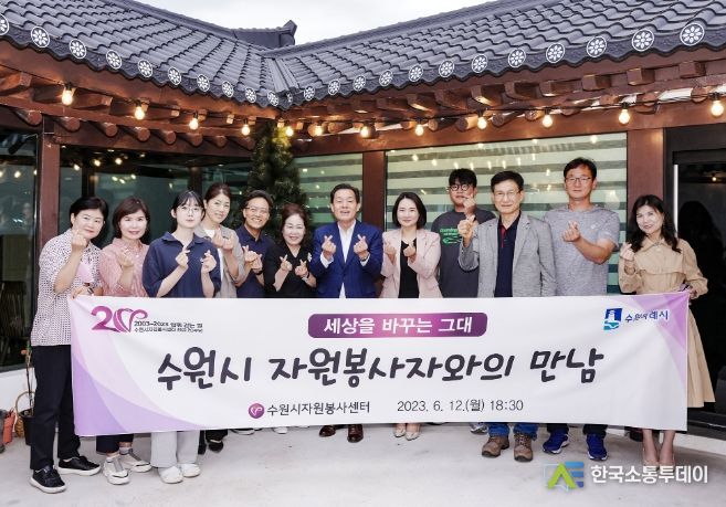 수원시자원봉사센터가 12일 저녁 행궁동의 한 음식점에서 연 ‘수원시 자원봉사자와의 만남’에 참석한 이재준 수원시장은 “이웃을 위해 헌신하는 자원봉사자들의 활동을 시민들에게 널리 알려 자원봉사자들이 반짝반짝 빛날 수 있게 하겠다”며 “빛나는 자원봉사자들의 영향을 받은 다른 시민들이 자원봉사에 참여하는 선순환이 일어날 것”이라고 말했다.