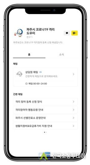 한국소통투데이 관리자 기자 | 파주시는 경기도에서 최초로 24시간 카카오톡 상담소 서비스를 운영한다.
