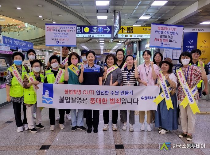 한국소통투데이 관리자 기자 | 수원시가 15일 경찰·시민·한국철도공사와 함께 수원역 공중화장실·광장에서 ‘공중화장실 불법촬영 예방 캠페인’을 펼쳤다.