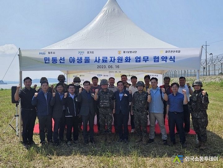 한국소통투데이 관리자 기자 | 파주시는 16일 경기도, 육군 보병1사단, 파주연천축산업협동조합과 함께 ‘군부대 유휴지 풀사료 이용 협약식’을 체결했다.