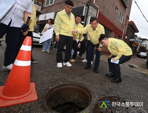 먼저 지난해 집중호우로 침수됐던 장안구 효원빌라와 정자시장 일원을 점검했다. 수원시는 침수를 방지하기 위해 가정에 빗물이 역류하는 것을 막아주는 옥내 역류방지밸브 109개와 차수판 10개를 마련했다.