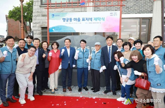 한국소통투데이 관리자 기자 | 수원시 팔달구 행궁동에서는 마을의 화합과 번영을 위해 지난 6월 7일 행궁동 행정복지센터 앞에 ‘왕의 꿈이 깃든 마을, 축복의 땅 행궁동’이라는 글귀로 마을 표지석을 세우고, 이를 기념하기 위해 21일 제막식을 개최했다.