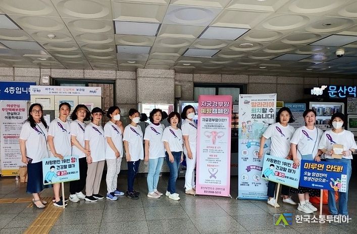 지난 22일 문산보건지소에서 진행하는 건강 관리 사업을 적극 홍보하기 위해 산부인과 갱년기 프로그램에 참여 중인 시민 자원봉사자들과 함께 거리로 나갔다.