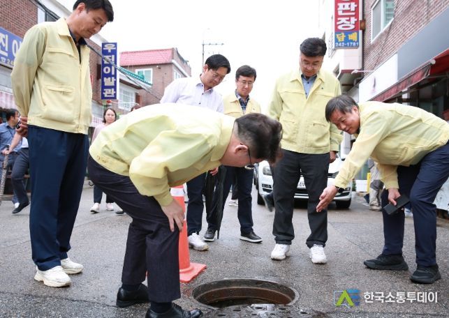 막힘 현상이 자주 발생하는 빗물받이 1170여 개의 배수 상태도 살펴봤다. 빗물받이가 담배꽁초와 낙엽으로 막혔거나 장판 등 덮개가 있어 물이 잘 빠지지 않는 곳에서는 정비작업도 함께 이뤄졌다.