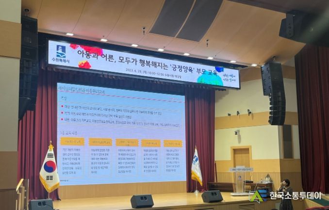 한국소통투데이 관리자 기자 | 수원시가 29일 시청 대강당에서 관내 민간 어린이집 영유아 부모 등을 대상으로 ‘긍정양육’ 교육을 했다.