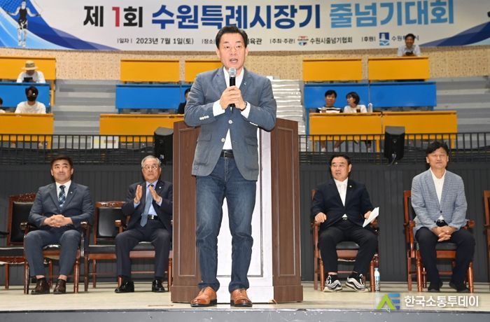 한국소통투데이 관리자 기자 | 수원시 줄넘기 꿈나무 선수와 생활체육인이 참여한 ‘제1회 수원특례시장기 줄넘기 대회’가 1일 수원종합운동장 내 수원체육관에서 열렸다. 이번 대회는 수원시줄넘기협회가 주최·주관하고 수원시가 후원했다.
