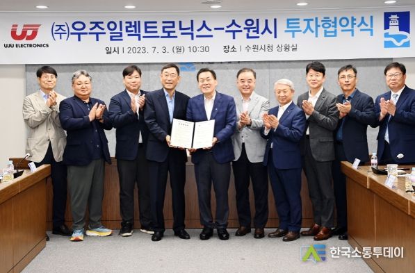 수원시는 3일 시청 상황실에서 우주일렉트로닉스와 ‘본사와 연구소 이전을 위한 투자 협약’을 체결했다.