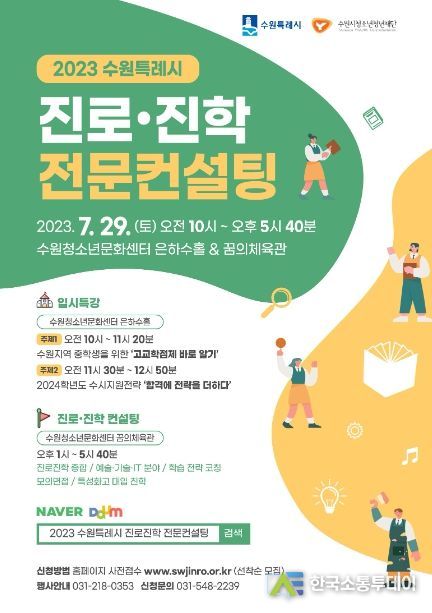 수원시청소년청년재단 청소년희망등대는 오는 7월 29일 수원청소년문화센터에서 ‘2023. 수원특례시 진로·진학 전문컨설팅’을 개최한다.