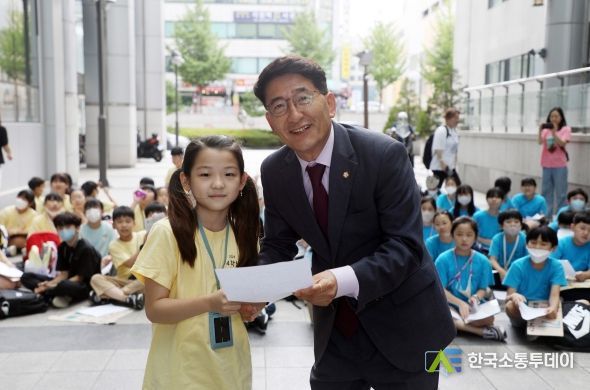 한국소통투데이 관리자 기자 | 김기정 수원특례시의회 의장은 5일, 영통구 신영초등학교 학생들에게 『어린이 환경 캠페인 요구서』를 전달받았다.