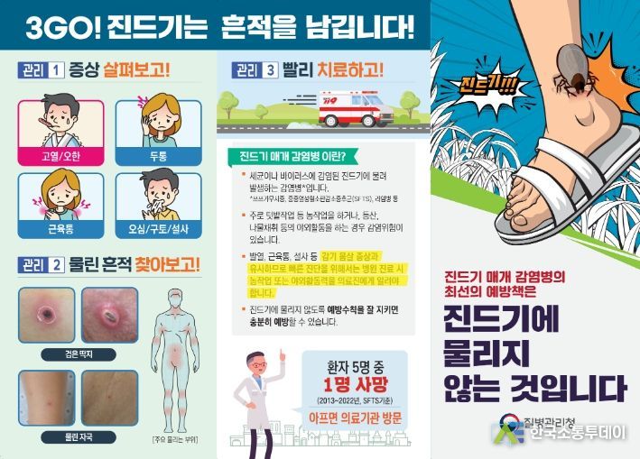질병관리청에 따르면 쯔쯔가무시증의 국내 치명률은 약 0.1~0.3%(2011~2022년 누적)이고, SFTS의 국내 치명률은 18.7%(2013~2022년 누적)에 달한다. 특히, SFTS는 백신과 치료제가 없어 예방이 중요하다.