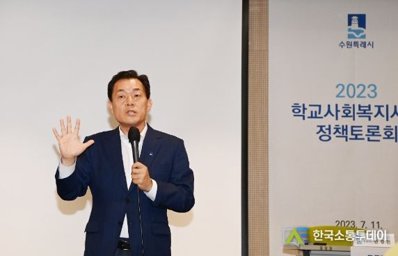 이날 토론회에는 이재준 수원시장과 수원특례시의회 김기정 의장, 이재식 부의장, 학부모, 학교장, 학교사회복지사업 관계자 등 200여 명이 참석했다.