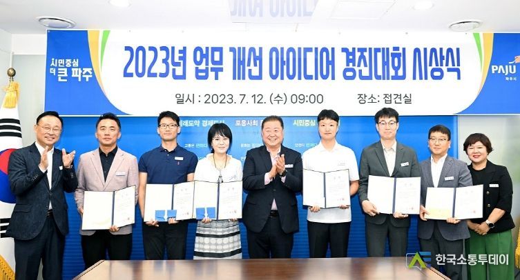 한국소통투데이 관리자 기자 | 파주시는 행정 업무의 불편 사항을 개선하기 위해 ‘업무개선 아이디어 경진대회’를 실시하고 12일 우수제안 7팀에 시상식을 진행했다.