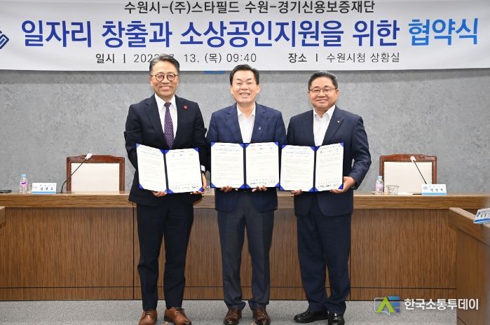 한국소통투데이 관리자 기자 | 수원시가 ㈜스타필드 수원, 경기신용보증재단과 협력해 일자리를 창출하고 소상공인을 지원한다.