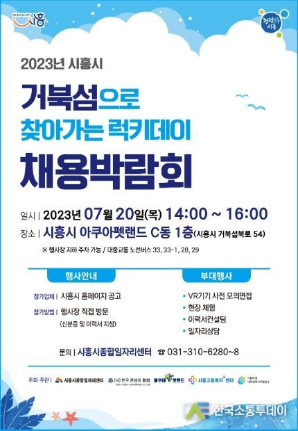 한국소통투데이 관리자 기자 | 시흥시가 오는 7월 20일 시흥시 아쿠아펫랜드(거북섬 소재)에서『2023년 시흥시 거북섬으로 찾아가는 럭키데이 채용박람회』를 개최한다