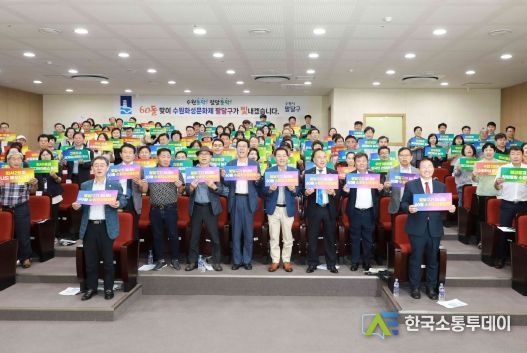 특히, 이번 교육에서는 ‘60돌 맞이 수원화성문화제’를 더욱 빛내기 위한 팔달구 각 동의 다짐 메시지를 담은 카드 퍼포먼스도 함께 진행됐다.