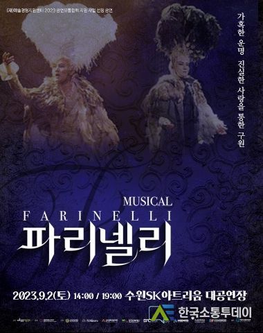 한국소통투데이 관리자 기자 | 18세기 유럽을 뒤흔들었던 최고의 오페라 가수 파리넬리의 삶을 웅장한 감동으로 엮어낸 ‘뮤지컬 파리넬리’가 9월 2일 오후 2시, 7시 2회에 걸쳐 수원SK아트리움 대공연장 무대에 오른다.