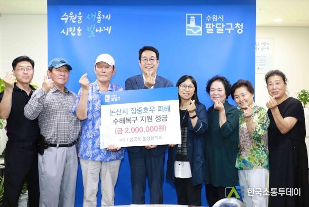 한국소통투데이 관리자 기자 | 수원시 팔달구 행궁동 통장협의회에서는 지난 20일 수원시와 자매결연을 맺고 있는 논산시의 호우피해 주민들을 돕기 위해 성금 200만원을 모금하여 팔달구청에 전달했다.